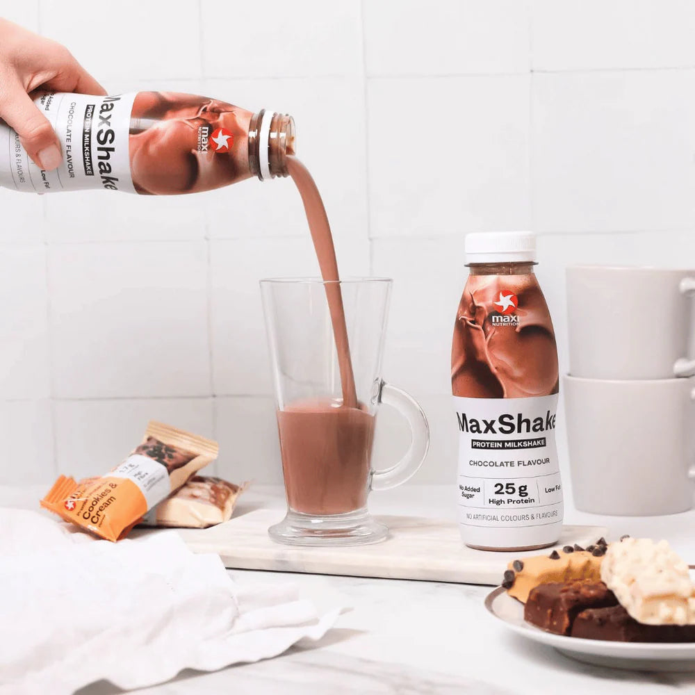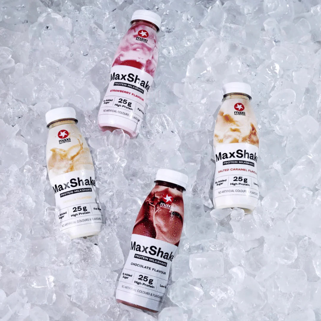 Maxi Nutrition MaxShake is a ready-to-drink protein milkshake designed for athletes and active lifestyles. Available in delicious flavours such as Chocolate, Banana, Coffee, Vanilla, and Strawberry, this shake delivers high-quality protein with no added sugar.